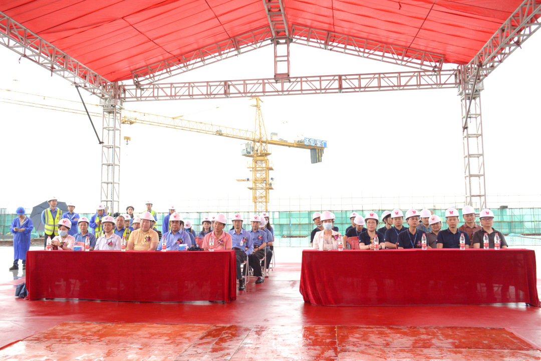 2023年5月24日上午,广合科技东莞智能自动化数控加工及电子制造服务项目(以下简称:广合项目)在望牛墩镇望临港工业园举行了隆重的封顶仪式。望牛墩镇副镇长黄文进、镇投资中心主任叶慧君、乐投董事长肖红星、集团总经理曾红携管理层代表和参建单位广东宏达工贸集团董事长袁斌及其领导等人共同出席见证了本次封顶仪式。